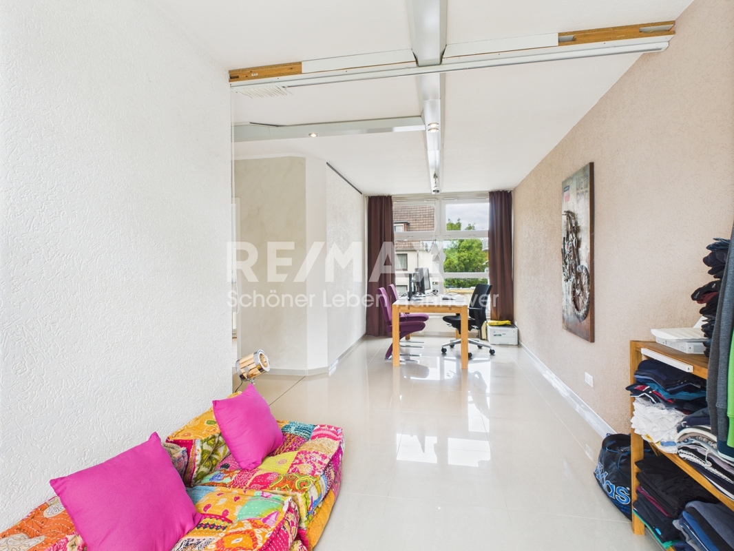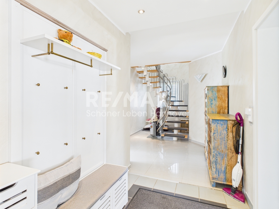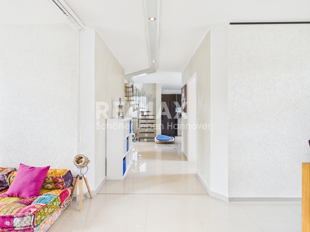 Diese gepflegte Doppelhaushälfte in Hannover-Vinnhorst bietet mit mehreren Etagen, sechs Zimmern und drei Bädern ausreichend Platz für unterschiedliche Wohnbedürfnisse.Der Eingang des Hauses führt in eine helle, offene Galerie mit einer Deckenhöhe von 3,90 Metern. Wenige Treppenstufen führen direkt ins Erdgeschoss.