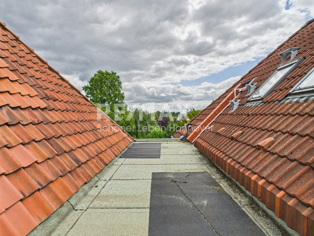Vom Obergeschoss gelangt man über eine Treppe in das ausgebaute Dachgeschoss, welches aus einem großen Zimmer mit drei Dachgauben besteht. Hier gibt es eine Tür, die auf die damals vorhandene Dachterrasse führt. Die Dachterrasse musste Ende 2016 zurück gebaut werden, da diese nicht fachgerecht ausgebaut war. Ein erneuter Ausbau wäre aber möglich. Ein Wasser- und Stromanschluss sowie eine Abstellkammer ist ebenfalls auf dem Dach vorhanden. Im Exposé finden Sie ein Bild, wie die Terrasse mal ausgesehen hat. Das Dachgeschoss ist mit Laminat ausgelegt.