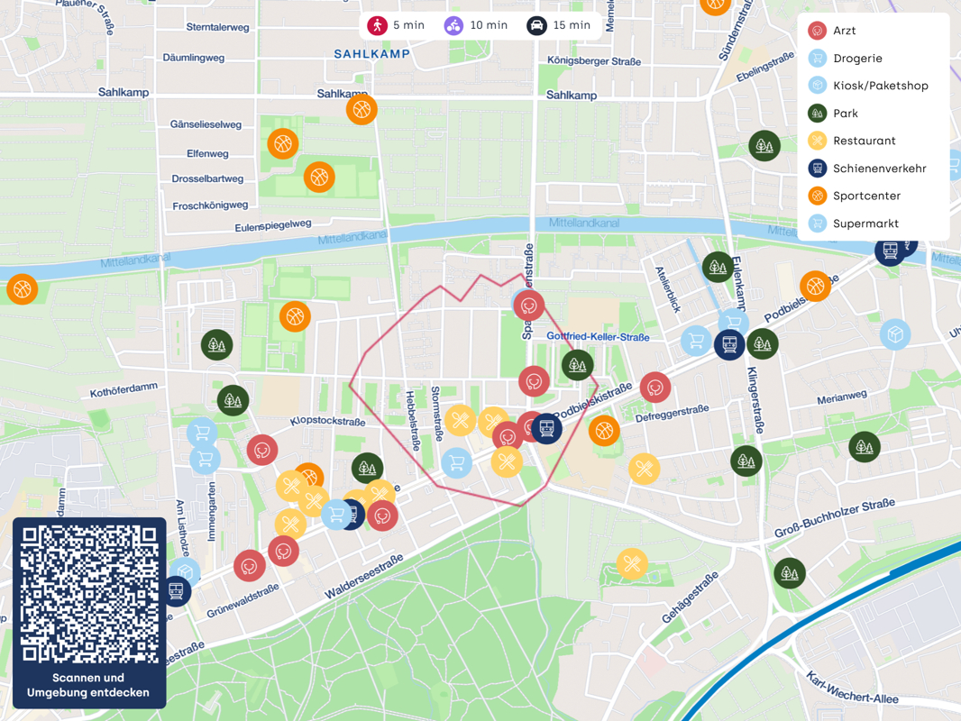 Die Immobilie befindet sich in einem lebendigen und begehrten Viertel von Hannover, das durch seine hervorragende Infrastruktur und verkehrsgünstige Lage überzeugt. In wenigen Gehminuten erreichen Sie die Straßenbahnstationen Spannhagengarten und Pelikanstraße, die von den Linien 3, 7 und 9 regelmäßig angefahren werden. Auch die Bushaltestellen der Linien 133 und 137 sind schnell erreichbar.Im direkten Umfeld finden sich zahlreiche Einkaufsmöglichkeiten für den täglichen Bedarf, darunter ein Penny-Markt, die Herz Apotheke sowie die Bäckerei Heiser. Auch gastronomische Angebote, Dienstleister und Ärzte sind fußläufig vorhanden.