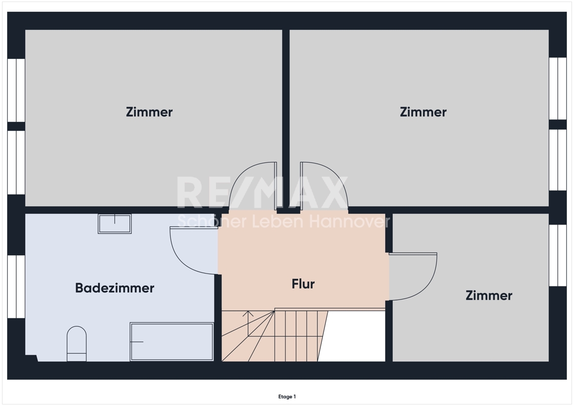 Im Obergeschoss befinden sich neben dem Badezimmer mit Badewanne drei helle Zimmer, die vielfältig nutzbar sind – als Schlafzimmer, Kinderzimmer oder Arbeitszimmer. Der eigene Garten der vom Wohnzimmer aus begehbar ist, lädt zum Entspannen, Spielen und Grillen im Freien ein.